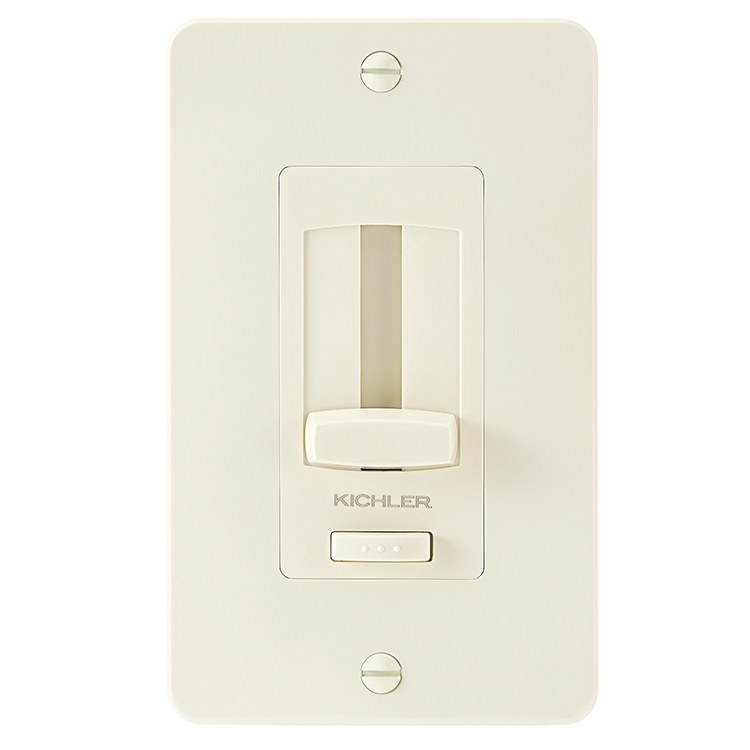 This wall-mounted face plate and trim is designed for use with the 4DD or 6DD Series LED Driver + Dimmer for Kichler undercabinet lights. The single-gang plate features a sliding control switch.